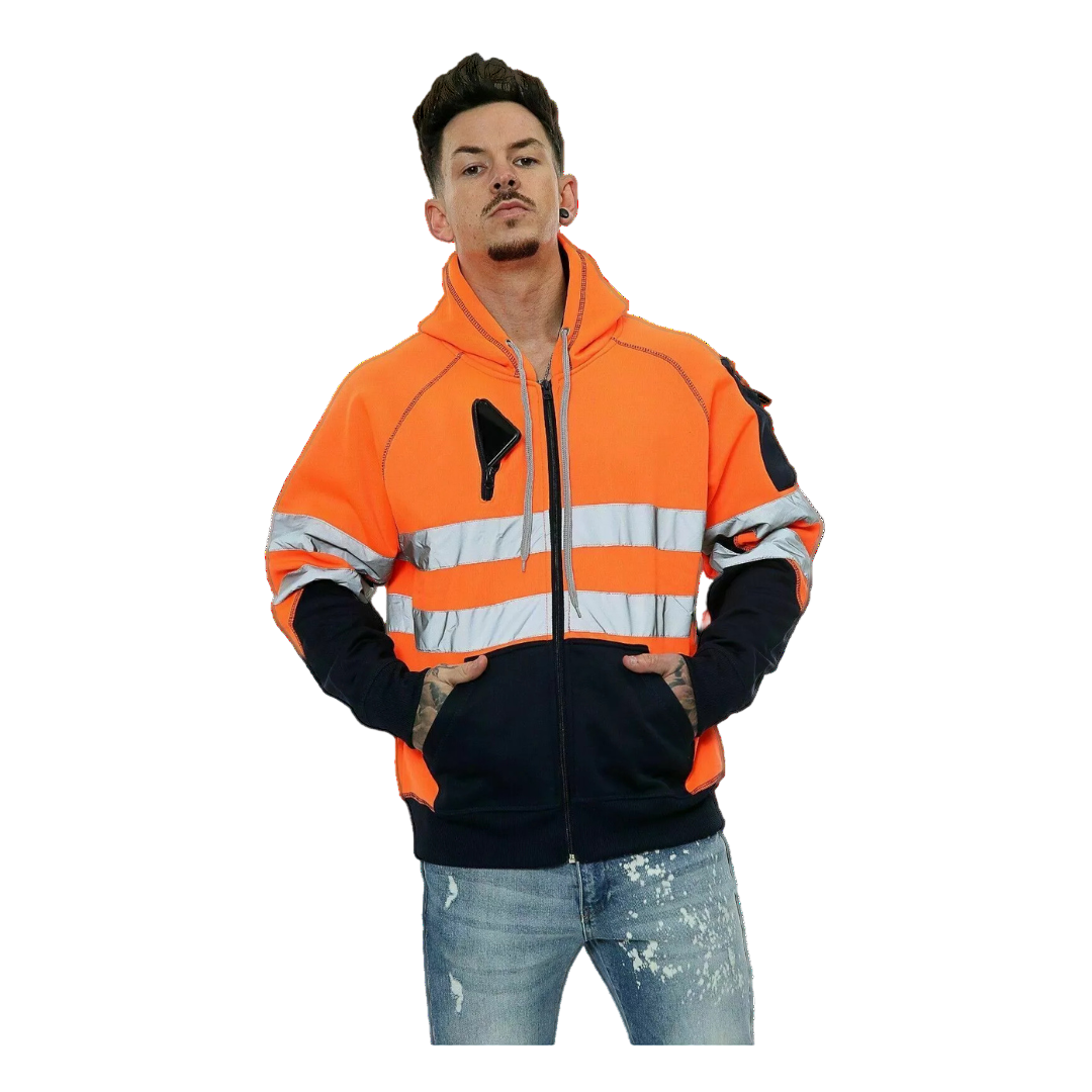 TanxWear Hi-Vis Zip-Up Safety Hoodie – Reflective, Warm Fleece Workwear
